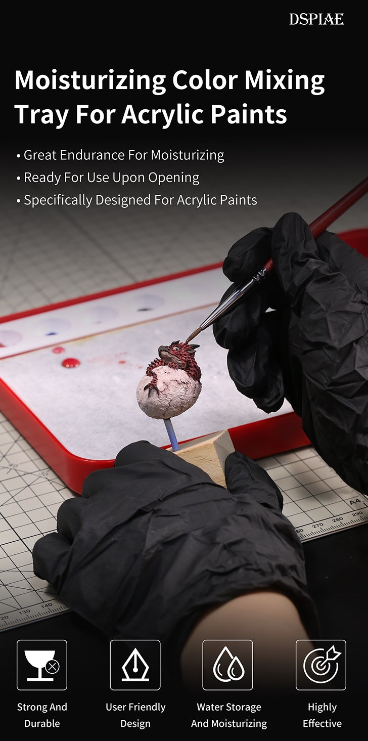 | DISPAE's new acrylic paint mixing tray features an enlarged color mixing area to meet your multi-color mixing demands with stronger, crash-proof ABS casing. |