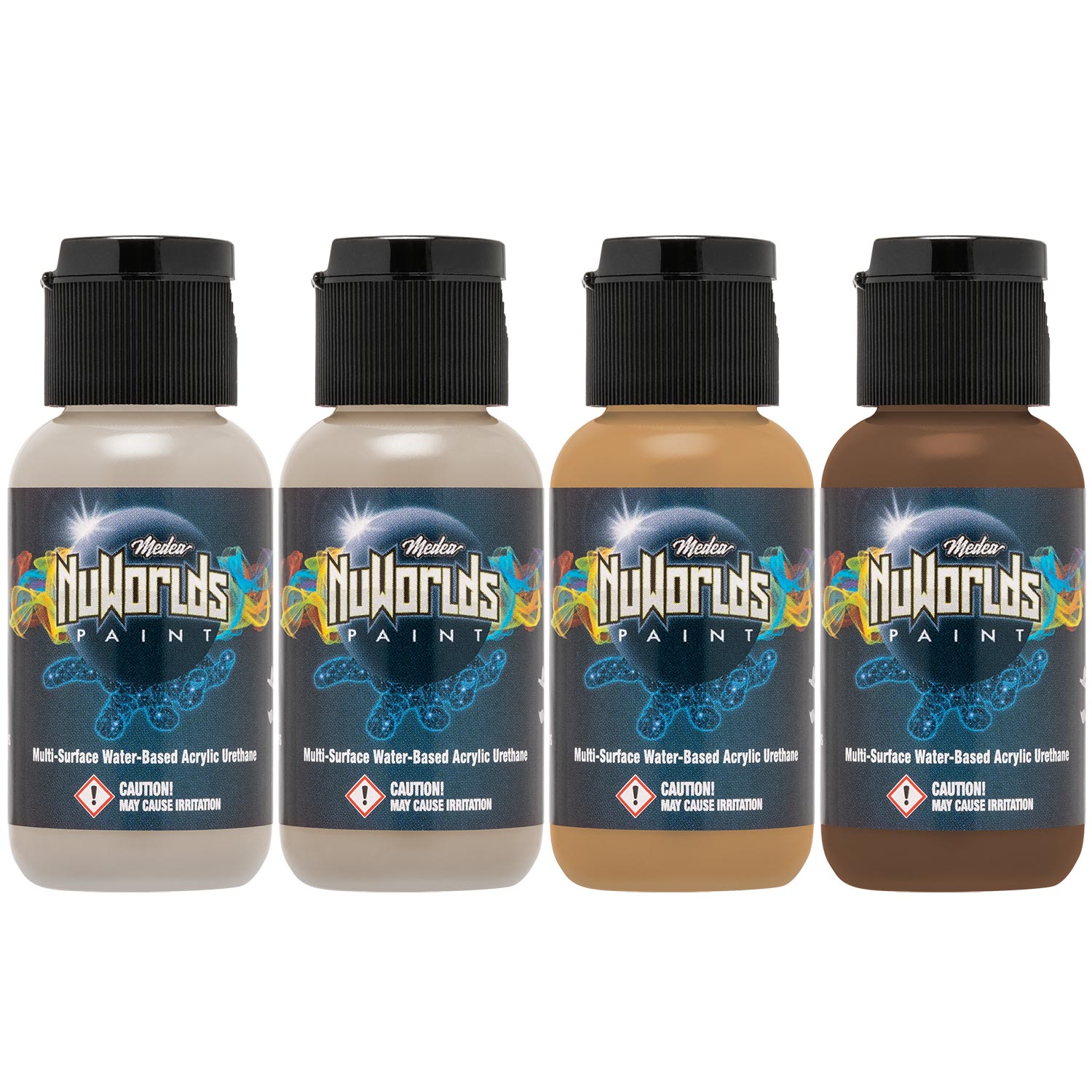 Available now at the following retailers: Art Supply Warehouse - California Blick Art Materials - Multistate Coast Airbrush - California Commercial Art Supply - New York Midwest Airbrush Supply Co. - Illinois Spraygunner - Florida TAG Team Hobbies - Colorado Texas Art Supply - Texas The Merri Artist - Oregon Painting shouldn't be complicated. That's why we designed a specially-pigmented formula with a comprehensive color range. These paints have been developed with a unique blend of resins and additives to make them ideal for painting minis and more. Now it's easier than ever to build dynamic layers with hyper realistic depth. Enter new realms in your mini painting experience with Medea NuWorlds Paint. Let Creation Begin. High Saturation Transparent Durability with No Primer Airbrush and Paint Brush Ready Colors inspired by Special FX artist Tim Gore's pigment rich palettes Medea NuWorlds Paint Epidermis Set includes: Medea NuWorlds Paint Light Neutral Flesh, 1 oz Medea NuWorlds Paint Neutral Flesh, 1 oz Medea NuWorlds Paint Light Olive Flesh, 1 oz Medea NuWorlds Paint Deep Olive Flesh, 1 oz