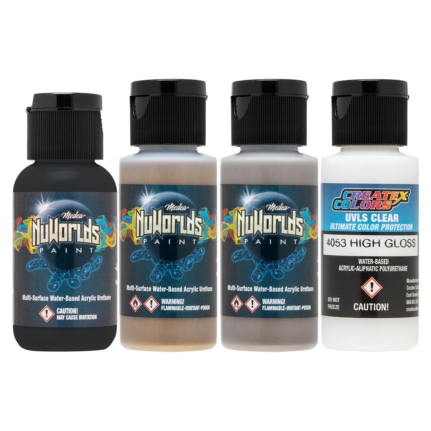 Available now at the following retailers: Art Supply Warehouse - California Blick Art Materials - Multistate Coast Airbrush - California Commercial Art Supply - New York Midwest Airbrush Supply Co. - Illinois Spraygunner - Florida TAG Team Hobbies - Colorado Texas Art Supply - Texas The Merri Artist - Oregon Painting shouldn't be complicated. That's why we designed a specially-pigmented formula with a comprehensive color range. These paints have been developed with a unique blend of resins and additives to make them ideal for painting minis and more. Now it's easier than ever to build dynamic layers with hyper realistic depth. Enter new realms in your mini painting experience with Medea NuWorlds Paint. Let Creation Begin. Durability with No Primer Airbrush and Paint Brush Ready Medea NuWorlds Paint TMM Armament Set includes: Medea NuWorlds Paint Zenith Black, 1 oz Medea NuWorlds Paint Gauntlet Gold, 1 oz Medea NuWorlds Paint Mirrored Steel, 1 oz Createx Colors UVLS High Gloss Clear, 1 oz