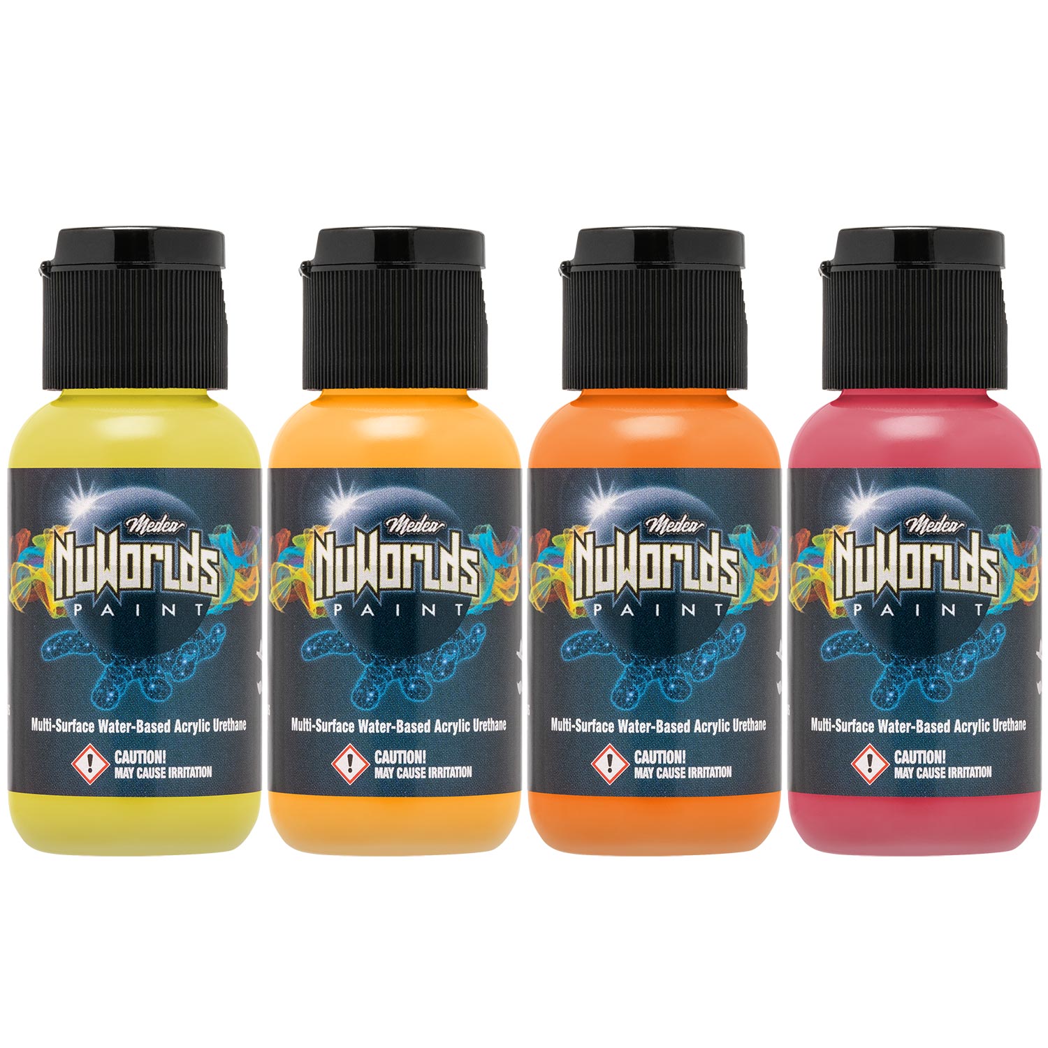 Available now at the following retailers: Art Supply Warehouse - California Blick Art Materials - Multistate Coast Airbrush - California Commercial Art Supply - New York Midwest Airbrush Supply Co. - Illinois Spraygunner - Florida TAG Team Hobbies - Colorado Texas Art Supply - Texas The Merri Artist - Oregon Painting shouldn't be complicated. That's why we designed a specially-pigmented formula with a comprehensive color range. These paints have been developed with a unique blend of resins and additives to make them ideal for painting minis and more. Now it's easier than ever to build dynamic layers with hyper realistic depth. Enter new realms in your mini painting experience with Medea NuWorlds Paint. Let Creation Begin. High Saturation Opaque Durability with No Primer Airbrush and Paint Brush Ready Medea NuWorlds Paint Warm Impenetrable Set includes: Medea NuWorlds Paint Impenetrable Yellow, 1 oz Medea NuWorlds Paint Impenetrable Chrome Yellow, 1 oz Medea NuWorlds Paint Impenetrable Orange, 1 oz Medea NuWorlds Paint Impenetrable Red, 1 oz