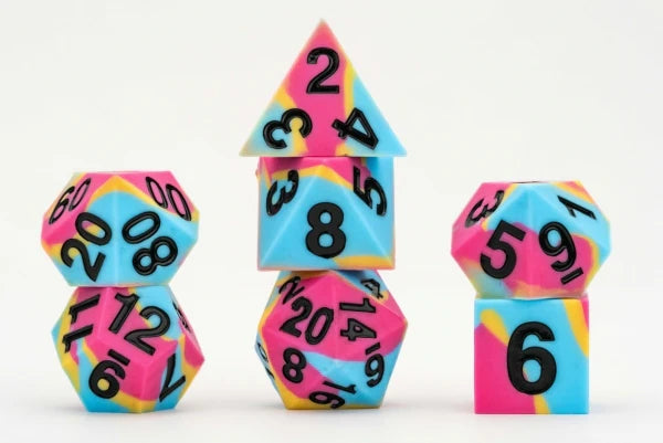 16mm Pride Sharp Edge Silicone Rubber Poly Dice Set: Pansexual (7)