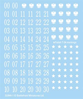 Our brand new set of Late-war Soviet Decals offers a great deal of variety to anybody building a Soviet Flames Of War force. This set contains four different sheets covering many types of Soviet vehicle markings.